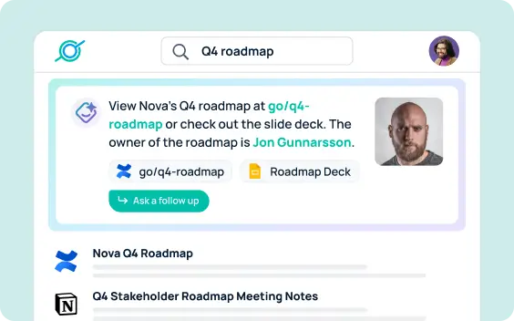 AI insights pull from all your data sources at once for intelligent enterprise search results.